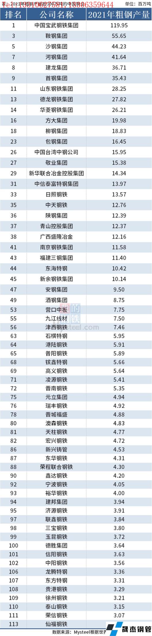 免責聲明:本網站(山東聊城晟杰無縫鋼管廠www.ahcom.com.cn)刊載的“2021年中國64家重點鋼企粗鋼產量排名”等均源于網絡,版權歸原作者所有,且僅代表原作者觀點,本文所載信息僅供參考。轉載僅為學習與交流之目的,如無意中侵犯您的合法權益,請及時聯系刪除。本網站刊登此篇文章并不意味著本站贊同其觀點或證實其內容的真實性,我們不對其科學性、嚴肅性等作任何形式的保證。如果侵犯了您的版權,請盡快聯系我們予以撤銷,謝謝合作!
