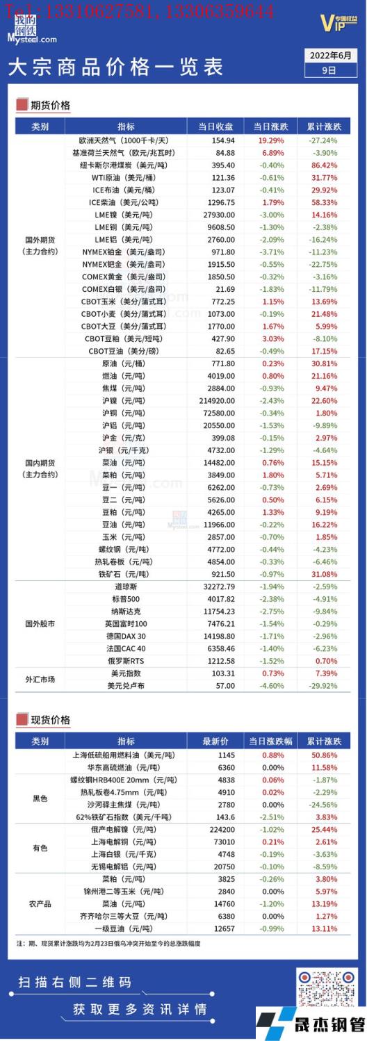 免責聲明:本網站(山東聊城晟杰無縫鋼管廠www.ahcom.com.cn)刊載的“俄烏局勢丨大宗商品價格一覽表(6月9日)”等均源于網絡,版權歸原作者所有,且僅代表原作者觀點,本文所載信息僅供參考。轉載僅為學習與交流之目的,如無意中侵犯您的合法權益,請及時聯系刪除。本網站刊登此篇文章并不意味著本站贊同其觀點或證實其內容的真實性,我們不對其科學性、嚴肅性等作任何形式的保證。如果侵犯了您的版權,請盡快聯系我們予以撤銷,謝謝合作!