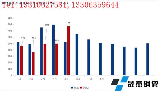 前言:海關總署6月9日數據顯示,2022年5月中國出口厚壁無縫鋼管775.9萬噸,較上月增加278.2萬噸,同比增長47.2%,環(huán)比大幅增長56.89%;1-5月累計出口厚壁無縫鋼管2591.5萬噸,同比下降16.2%,環(huán)比增長8.63%;