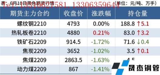 熱軋板卷:6月10日,全國24個主要城市4.75mm熱軋板卷均價4897元/噸,較上個交易日下跌13元/噸。下周市場基本面預計會呈現出一個無縫厚壁鋼管廠家減量、市場庫存累積的節奏。無縫厚壁鋼管廠家目前訂單尚有2成左右的缺口,為了保證現金流的正常運轉,反而會呈現低價接單的情況,對于市價造成承壓;其次,限產的預期在逐步落地,對于盤面的原料支撐力度則有所下降,而熱卷銷售壓力較大的情況下,對于盤面利潤所給予的預期偏低,因此會呈現共同趨弱的走勢;最后,市場對于消費信心偏強,但經過2-3周的驗證,消費起速依然較差,而商家手中資源不缺,售賣的想法較為明顯,但現實則是殘酷的,去庫動能依然不強。綜合來看,產量下降、庫存繼續上升,表需轉差。而現貨端庫存上升,兌現難度加大,漲價的動力不足,對于盤面所帶來的負反饋預期在上升的情況下,預計下周全國熱卷或將呈現震蕩偏弱的趨勢。