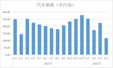 根據(jù)中國(guó)汽車工業(yè)協(xié)會(huì)統(tǒng)計(jì)數(shù)據(jù)顯示,2022年4月份,汽車產(chǎn)銷分別完成120.5萬(wàn)輛和118.1萬(wàn)輛,環(huán)比分別下降46.2%和47.1%,同比分別下降46.1%和47.6%。1-4月,汽車產(chǎn)銷分別完成769.0萬(wàn)輛和769.1萬(wàn)輛,同比分別下降10.5%和12.1%。