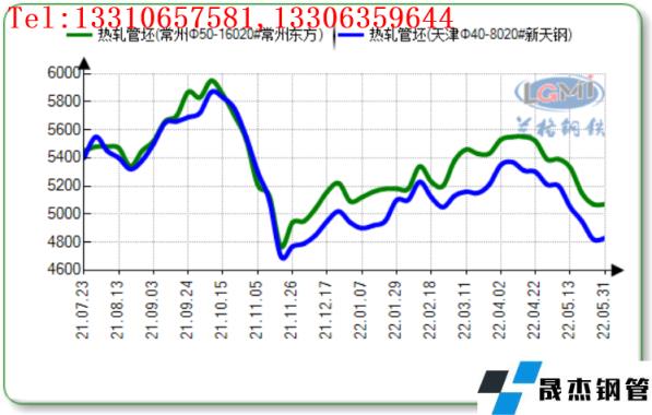 圖2 2021-2022年南北方樣本無縫無縫鋼管廠家20#熱軋管坯價格走勢圖