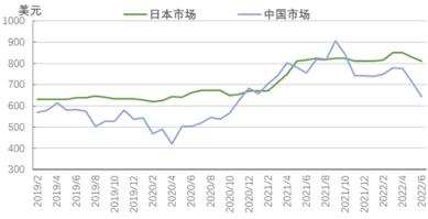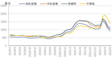 圖5 2019-2022年亞洲扁平材市場價(jià)格走勢圖