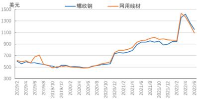 圖6 2019-2022年亞洲螺紋鋼價(jià)格走勢圖