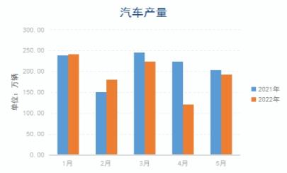 據(jù)中國(guó)汽車(chē)工業(yè)協(xié)會(huì)統(tǒng)計(jì)數(shù)據(jù)顯示,2022年5月份,汽車(chē)產(chǎn)銷(xiāo)分別完成192.6萬(wàn)輛和186.2萬(wàn)輛,環(huán)比分別增長(zhǎng)59.7%和57.6%,同比分別下降5.7%和12.6%。1-5月,汽車(chē)產(chǎn)銷(xiāo)分別完成961.8萬(wàn)輛和955.5萬(wàn)輛,同比分別下降9.6%和12.2%。