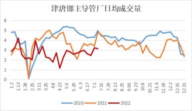 從焊鍍管品種來看,截至6月30日,上半年在統(tǒng)計11家管廠日均出貨量2.69萬噸,同比去年同期下降26.90%,同比2020年同期下降30.49%,其中6月環(huán)比上月增長1.32%,上半年高預(yù)期、高供應(yīng)持續(xù)發(fā)酵,但需求受疫情等影響,持續(xù)后延,管廠日均出貨峰值4.2萬,為農(nóng)歷春節(jié)前的冬儲階段。上半年在統(tǒng)計國內(nèi)各區(qū)域貿(mào)易商日均出貨量峰值在3月初,均值下滑24.63%,其中6月處于上半年平均日出貨量中線上方水平,較均值增長9.19%,較年內(nèi)峰值下滑17%。7月價格跌勢超出預(yù)期,終端實(shí)際需求釋放仍將有限,預(yù)計7、8月份仍是一個高庫低需的景象;同時,厚壁鋼管產(chǎn)業(yè)鏈虧損程度亦超預(yù)期,關(guān)注庫存的下降斜率變化。