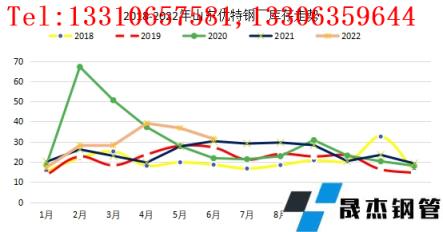 二季度,受3月份吉林、上海等地疫情影響,尤其上海疫情散發(fā)全國(guó)近30個(gè)省市,且周期兩個(gè)多月,對(duì)于本地以及周邊江浙地區(qū)運(yùn)輸、制造等行業(yè)影響重大,其中吉林、上海兩地占全國(guó)汽車(chē)產(chǎn)量20%,對(duì)于汽車(chē)用鋼形成明顯制約。無(wú)縫鋼管廠家訂單逐步減少,市場(chǎng)價(jià)格持續(xù)走低。其中4-6月份中天、淮鋼對(duì)優(yōu)特鋼出廠價(jià)格累計(jì)下調(diào)810元。