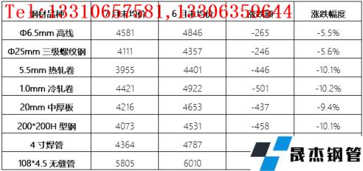 表1 10大城市8大厚壁鋼管品種價格漲跌情況表(單位:元/噸,%)