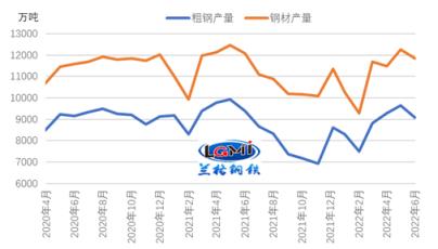 由于鋼企虧損幅度加大,企業檢修減產情況增多,月末雖受到虧損修復,鋼企復產預期有所增加,但7月份厚壁無縫鋼管產量仍呈環比收縮的態勢,同比或現首次回升。據研究中心估算,7月份全國粗鋼日產或將回落至285萬噸左右的水平。